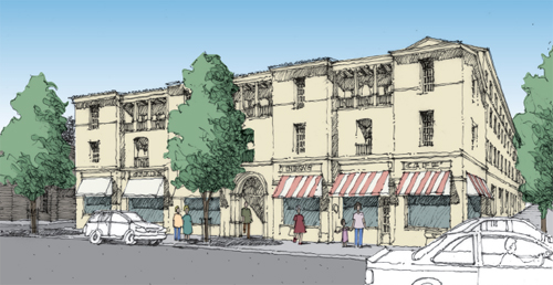 Working with the citizens and City staff, FTB developed prototype designs, identifying key standards which addressed scale or affected housing density. Likely redevelopment sites were identified in consultation with economists and local developers. As the standards were refined by staff, Working Group and Planning Commission review, FTB designed prototypes for all likely sites for a 3-d model to provide two possible scenarios, one resulting in significantly more housing units, and one with lower buildings and less redevelopment potential. Economic feasibility analysis of a typical site on small and larger parcels helped to identify the incentives needed to encourage redevelopment with mixed use and housing.
